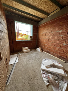 Elrendezését tekintve kiváló: előszoba, am-konyhás jó méretű nappali, fürdőszoba WC-vel, mosókonyha, lépcső alatt kamra található, a földszinten, plusz a nappaliból kilépve TERASZ kapott helyet az emeleten pedig 3 jó méretű hálószoba, fürdőszoba Wc-vel. A padlástér is pakolható. Telken belül 1 autó számára térkövezett KOCSIBEÁLLÓ, a ház előtt több autó számára parkolási lehetőség. Nappaliból a kertre nyíló kilátás.