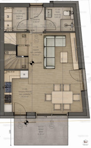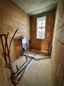 A fűtést 9,5 KW-os hősszivattyú látja el, padlófűtéssel. Emeletenként Fan-coil.