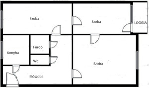 Elrendezése: előszoba, 3 szoba, konyha, fürdőszoba, wc, loggia.