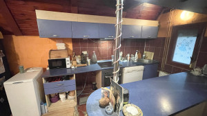 az alsó szinten előszoba, nappali, konyha, fürdőszoba (WC-vel) és két hálószoba található,