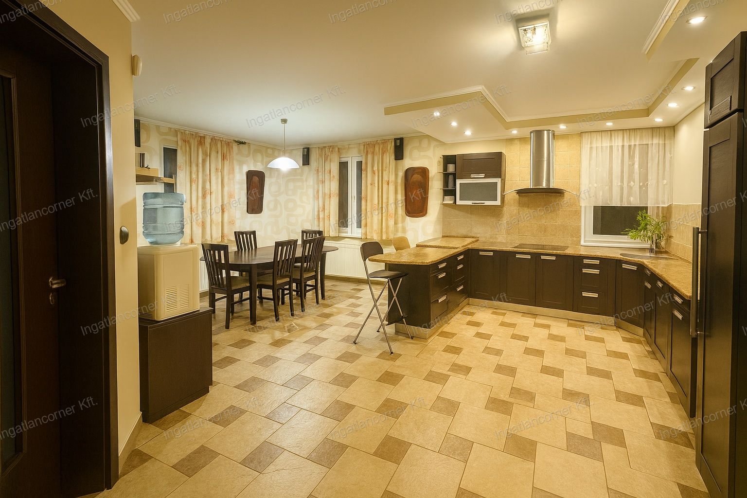 A tágas nappali és az abból nyíló hatalmas konyha-étkező tökéletes helyszín a családi összejövetelekhez.