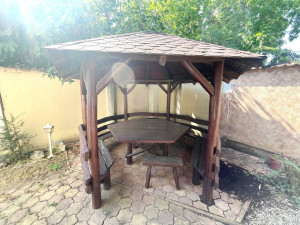 Az ingatlan egy 396 m²-es, parkosított telken helyezkedik el, ahol automata öntözőrendszer, fúrt kút, dísznövények, színes virágok, fák, kerti tó csobogóval, 12 személyes filagória, tégla bográcsozó és sütögető teszik teljessé a kikapcsolódást.