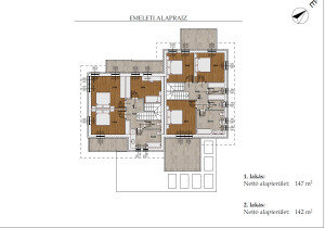 1.lakás: 142m2 nappali 3 hálószoba 177.500.000 Ft 500m2-es telekkel