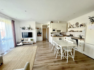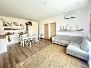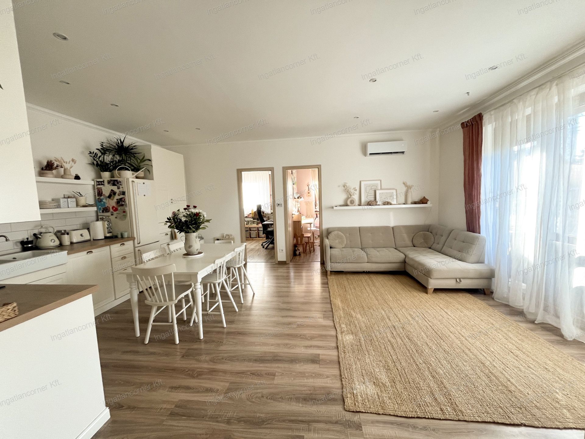 Igényes, FÖLDSZINTES, nappali + 3 hálós, lakás eladó 250 nm-es telken, igen alacsony rezsivel, 3 kW napelemmel /szaldós/.