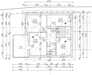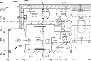 Teraszok: alsó szinten fedett terasz 16,80m2, emeleti terasz 13,22m2