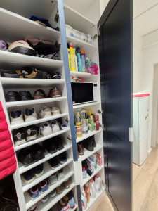 •Számtalan beépített tároló: előszobabútor cipőtárolóval és kabáttartóval, kamraszekrény, hálószobai tükrös gardróbszekrény