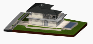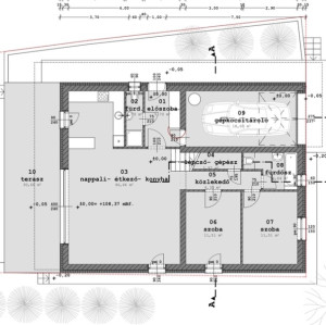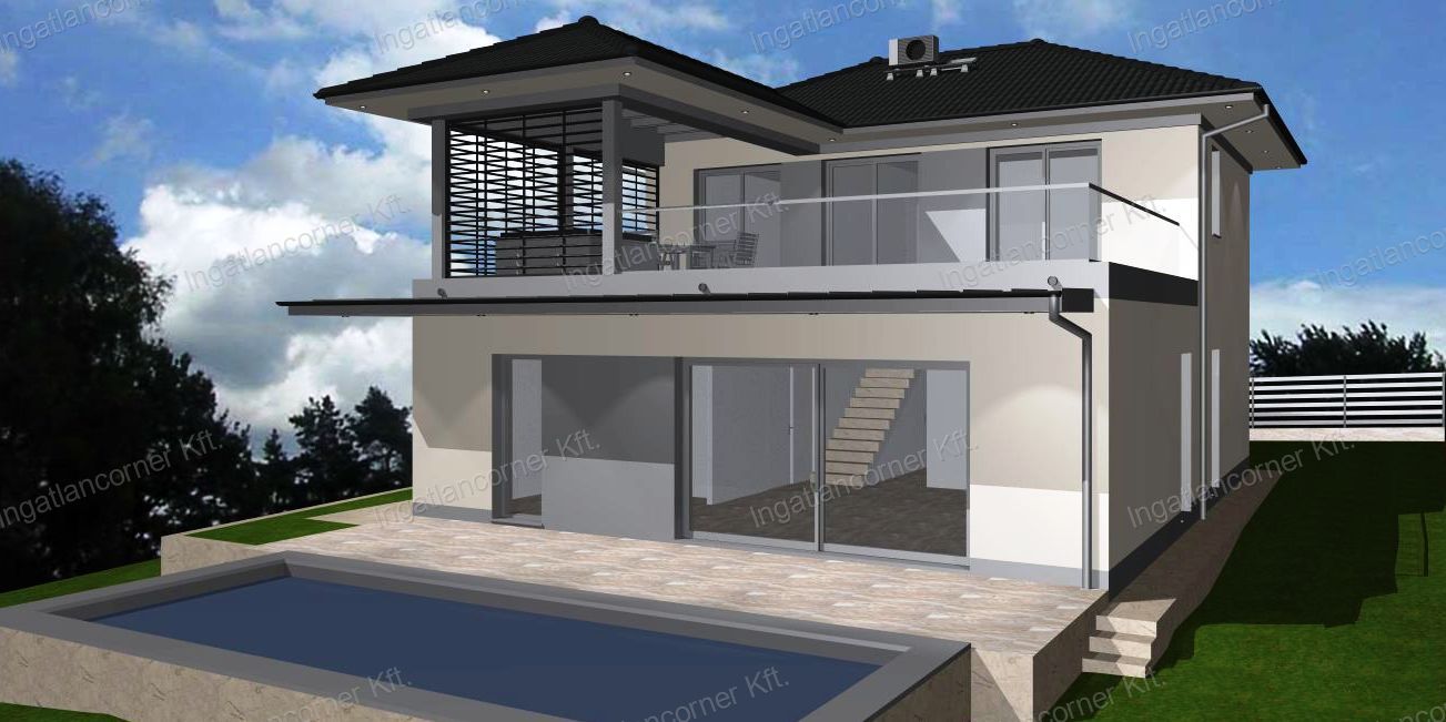 Az alsó szinten egy amerikai konyhás nappali, 2db hálószoba, vendég WC, 2db fürdőszoba (az egyik zuhanyzós, a másik kádas kivitelben), nyitott terasz 31 m2, garázs 18 m2, az emeleti részen közlekedő, 2db hálószoba, 1db fürdőszoba, háztartási helyiség, fedett terasz 17 m2 és egy nyitott terasz 45 m2 kerül, kialakításra.